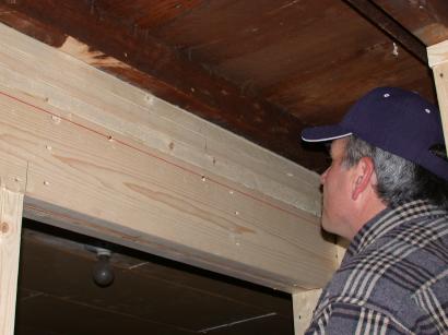 Laser device to shoot the final rafter height on the far wall for the new and level ceiling