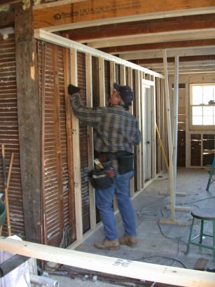 Constructing new south wall to support rafters on the south side