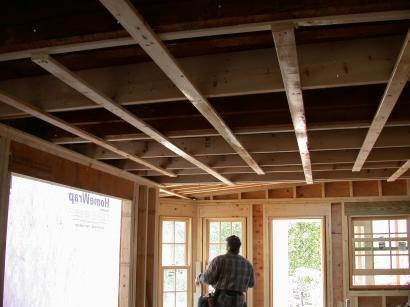 Frank starts installing the strapping. Strapping is used for the gypsum drywall.