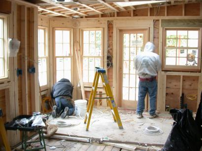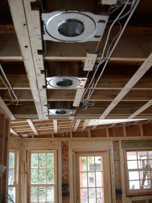 Wired recessed fixtures. Just about all the inside kitchen wiring is done and ready for drywall/plaster.