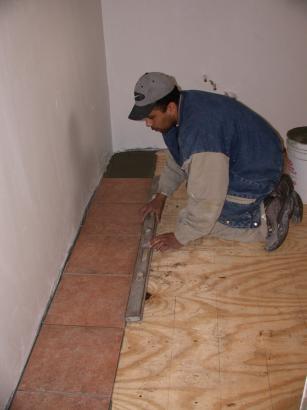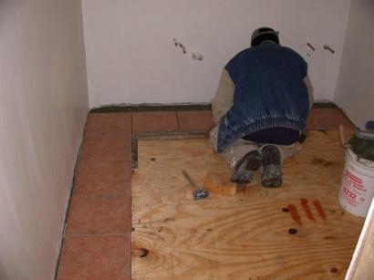 Covering the laundry room floor with 1/2 in plywood over the quik-trak.