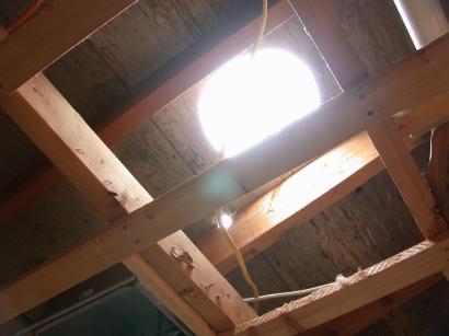 The dry wall guys buried the laundry sink drain. Running the washer caused a leak in this drain which resulted in a wet wall, floor and eventually a hole through the plaster where the drain is. I capped the drain hole so that the washer could be used