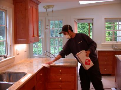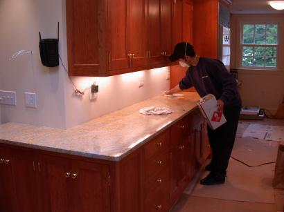 Counter sealant being applied to north counter. Two coats were applied to all counters.