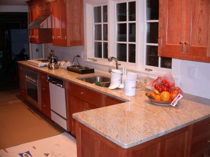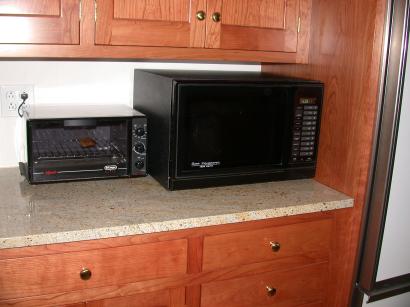 Sealant being applied to south counter. This stuff is really nasty - highly volatile and probably quite dangerous to breathe. It dries nearly instantly and needs to be reapplied about every 6 months. Its quite expensive too. Once applied we are ready to start using the counters. We still have to watch out for grease stains (olive oil, butter, gravy, etc) so such materials should be wiped up relatively quickly.