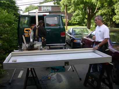 Mark preps the window trim.